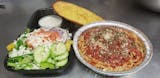 Penne pasta mixed with ricotta cheese, mozzarella cheese & our homemade meat sauce.