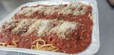 Spaghetti tossed in homemade meat sauce. Supersized for your party.